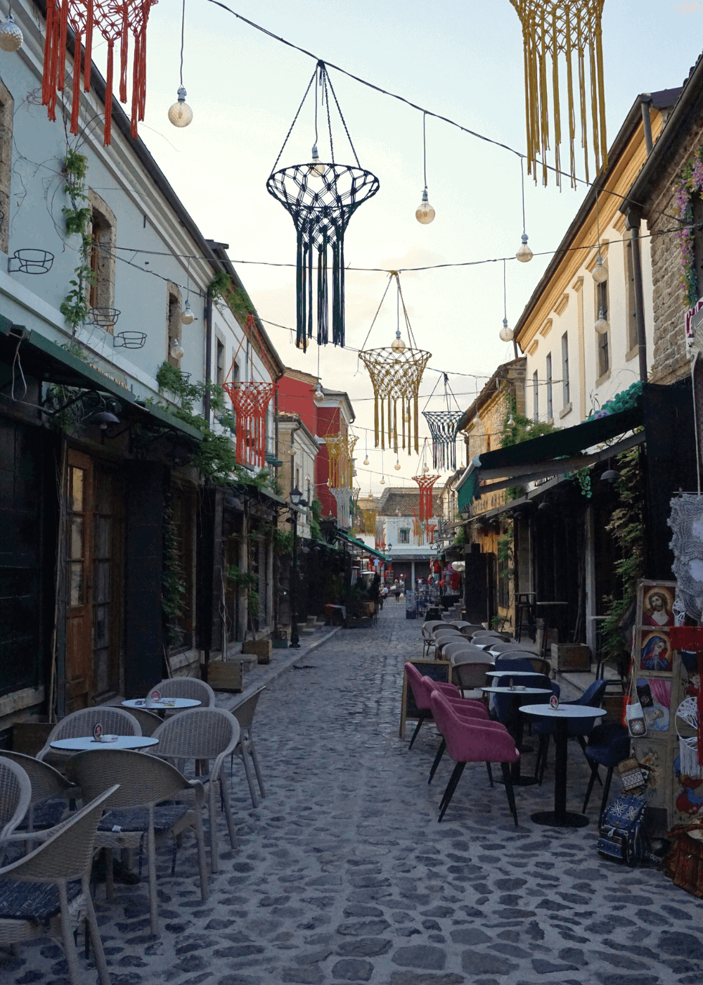 Come nightfall, though, it changes character entirely. Fairy lights go up, music drifts from every doorway, and the whole place feels like one big neighborhood dinner party. It’s where you realize Korçë is that rare city where nightlife still feels local, not curated for visitors.